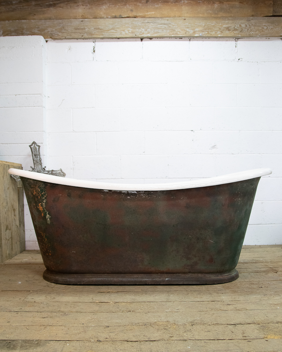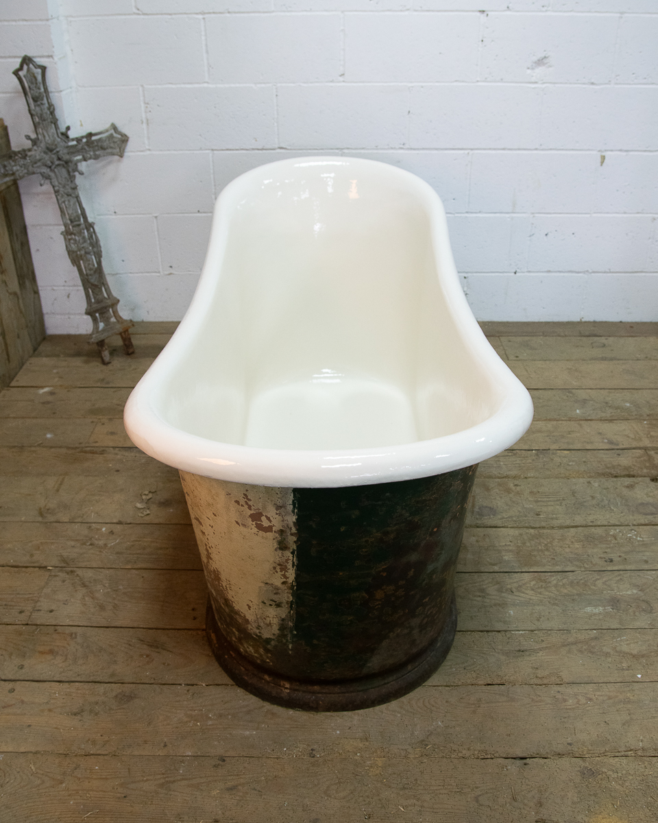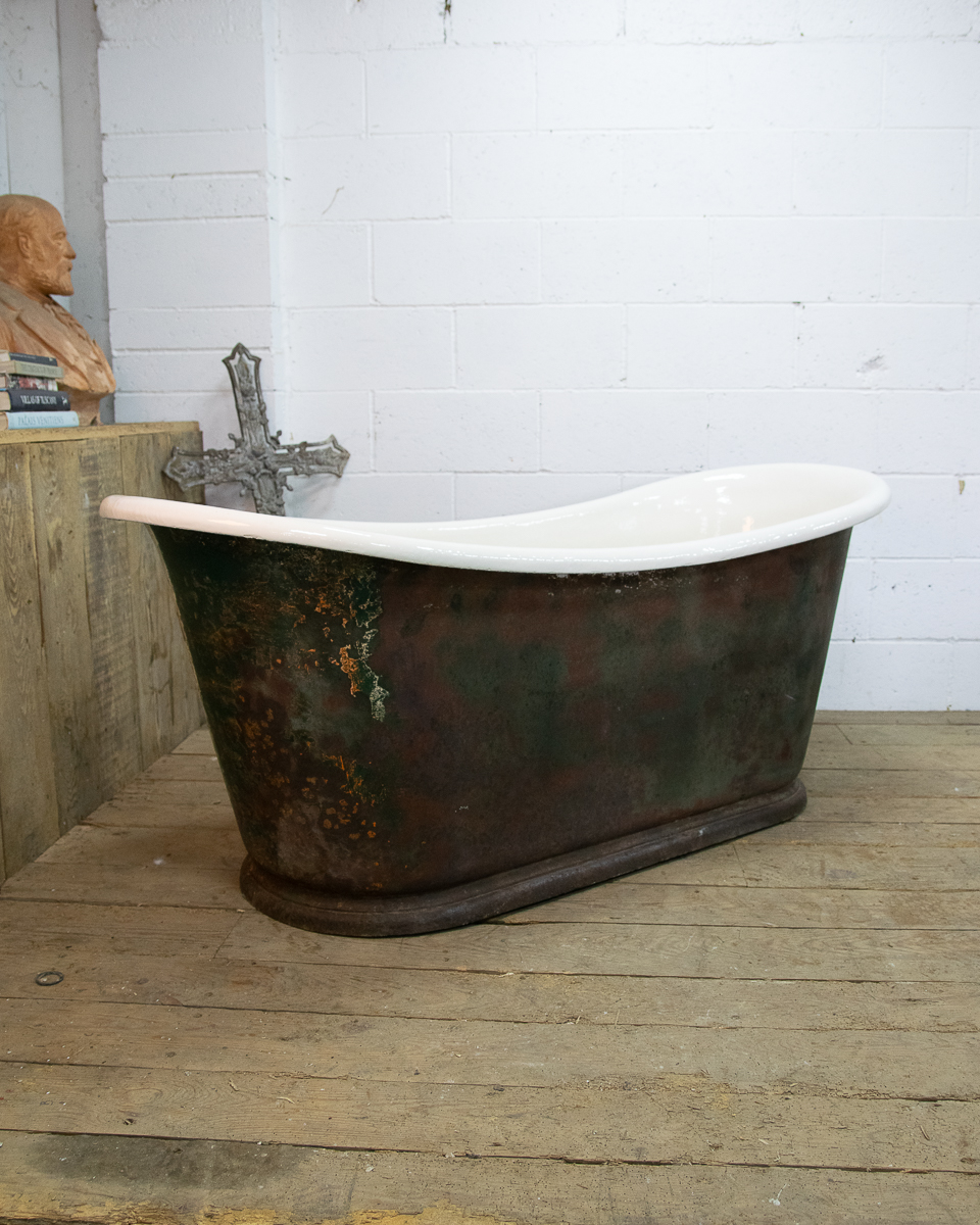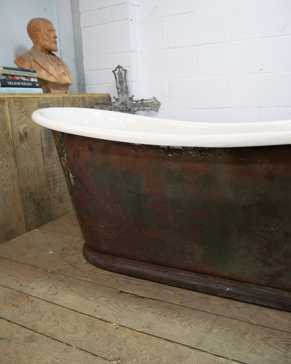 A beautifully shaped cast iron empire bathtub from around 1880 sitting on a plinth. Salvaged from a house in the Medoc. We have just had the interior enamel resurfaced. The exterior has its original patina but we could blast and repaint it if preferred.