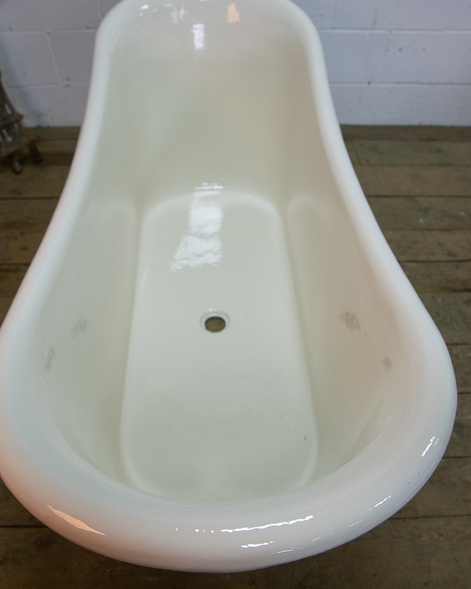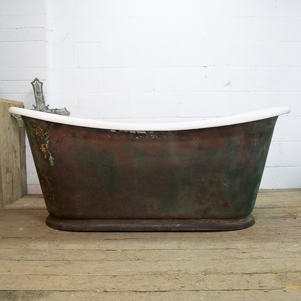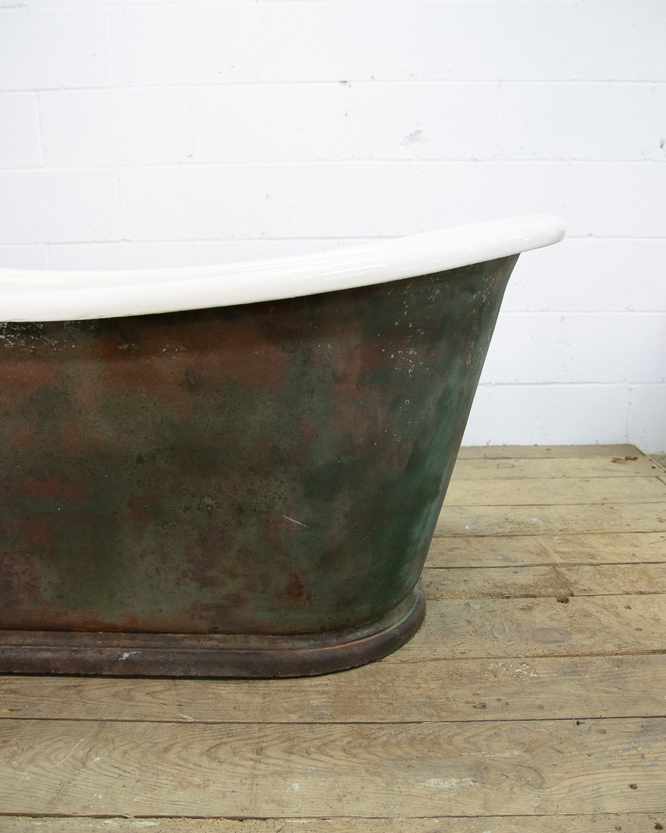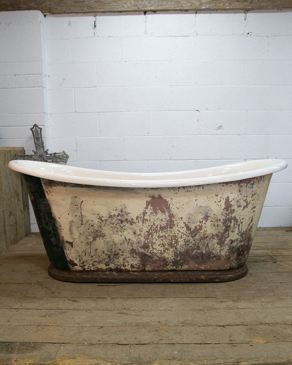 A beautifully shaped cast iron empire bathtub from around 1880 sitting on a plinth. Salvaged from a house in the Medoc. We have just had the interior enamel resurfaced. The exterior has its original patina but we could blast and repaint it if preferred.