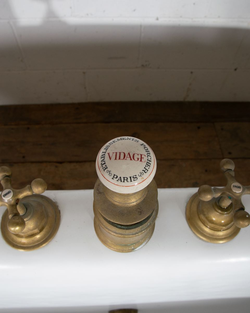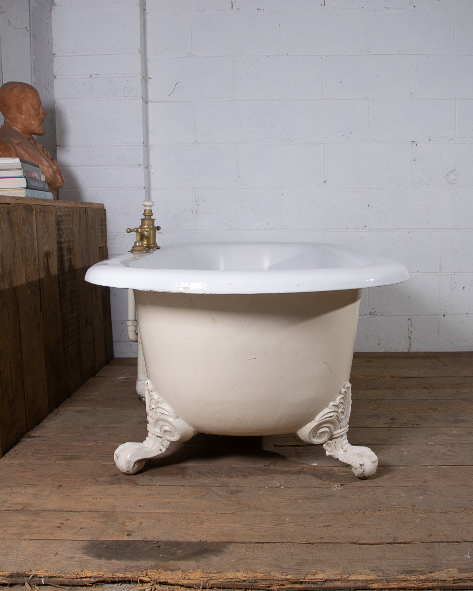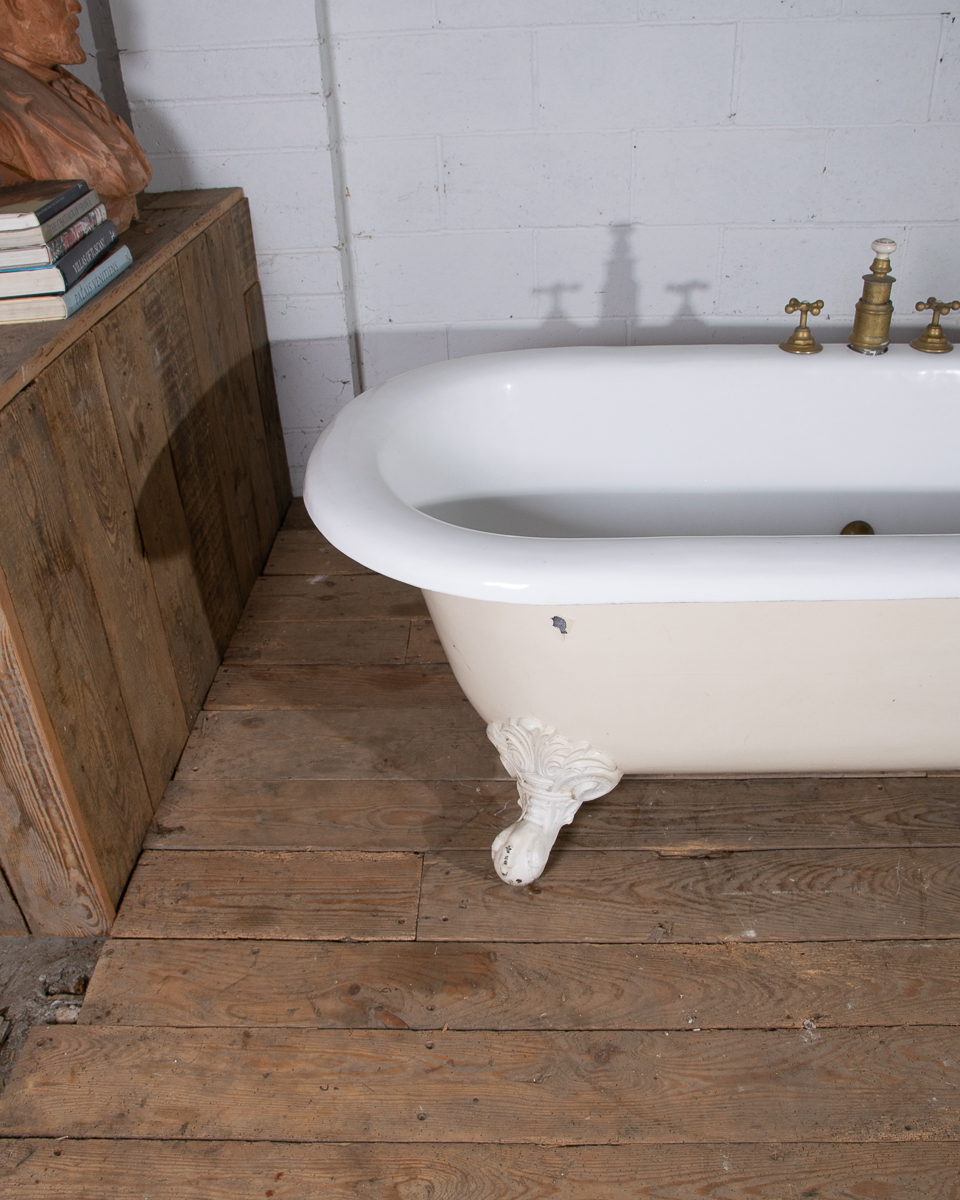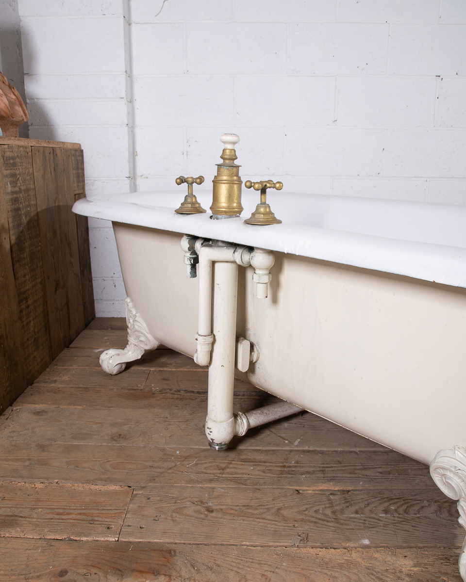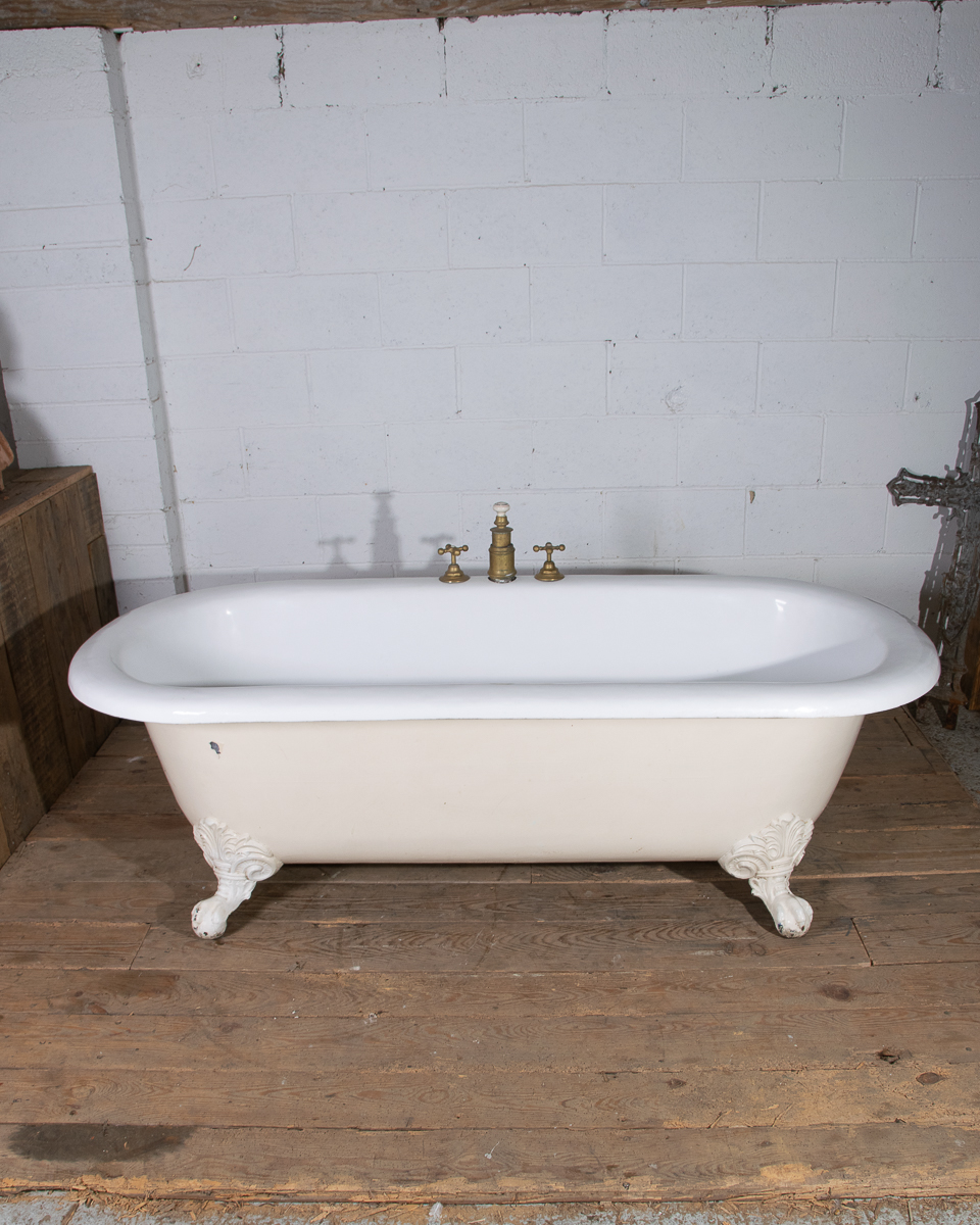 A huge and rare late 19th century double ended French cast iron freestanding bath manufactured by Porcher Paris. The rolledge measures 13cm wide! Intergrated taps, waste and water filling system. This bath was salvaged from a large bourgeoise house in the 16eme arrondissement in Paris.