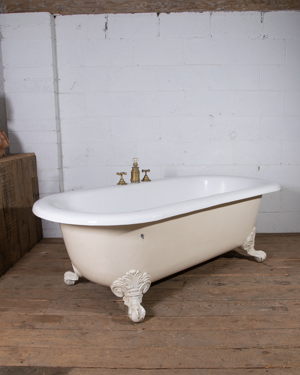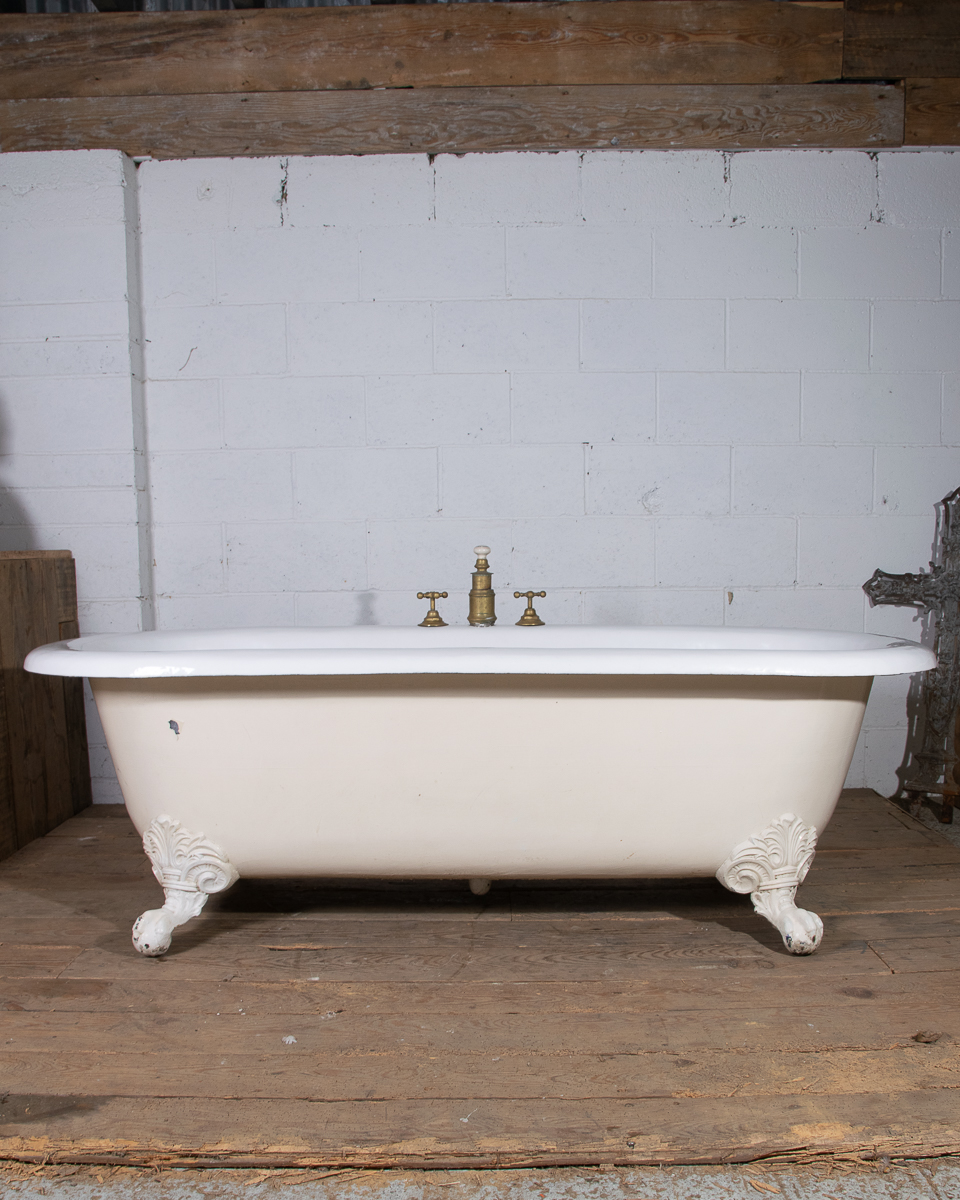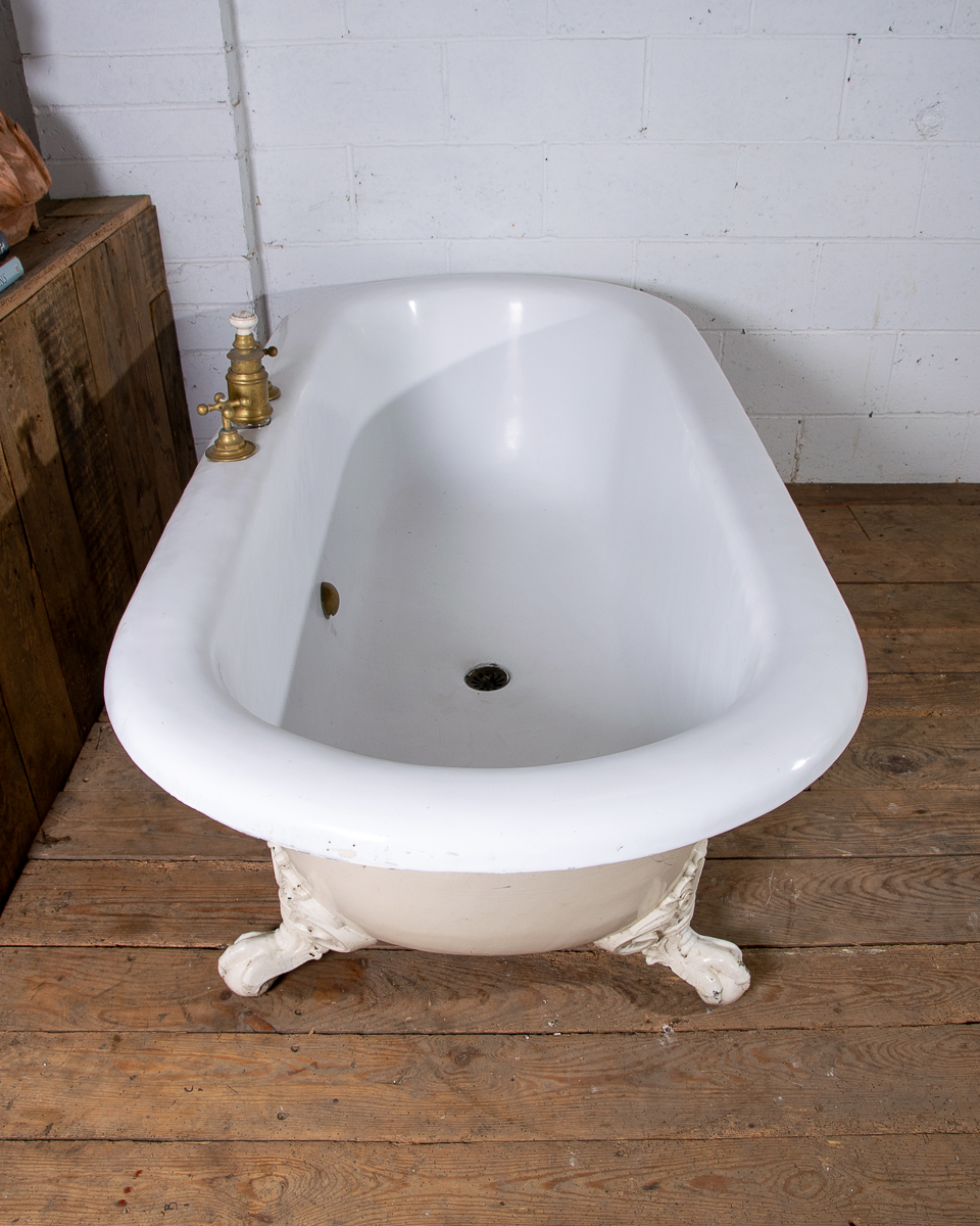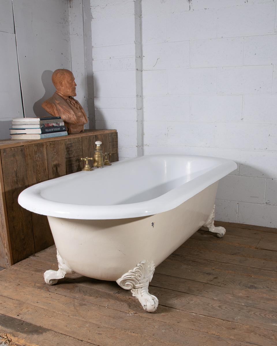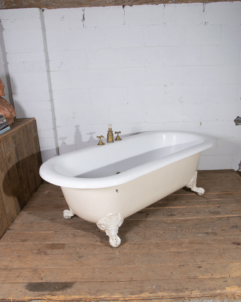 A huge and rare late 19th century double ended French cast iron freestanding bath manufactured by Porcher Paris. The rolledge measures 13cm wide! Intergrated taps, waste and water filling system. This bath was salvaged from a large bourgeoise house in the 16eme arrondissement in Paris.