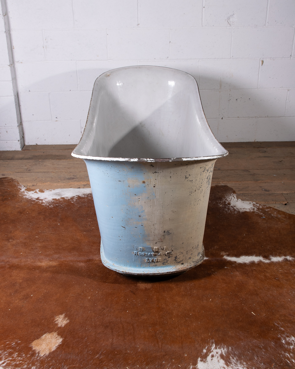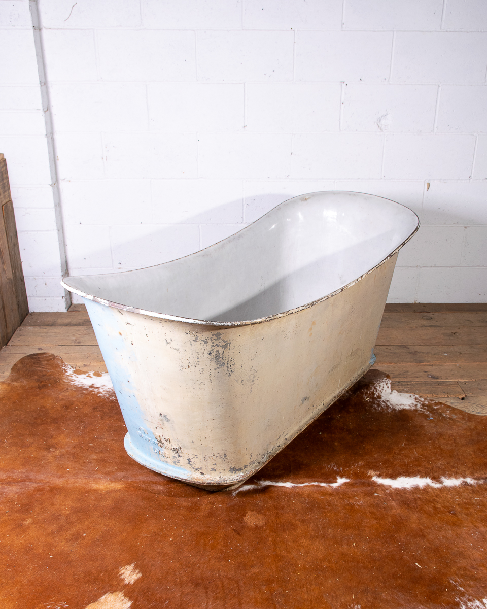 A beautifully shaped Rogeat cast iron empire bathtub from around 1880. The tub is currently in unrestored condition. Please contact us for enamel and exterior refurbishment options (not included in price).